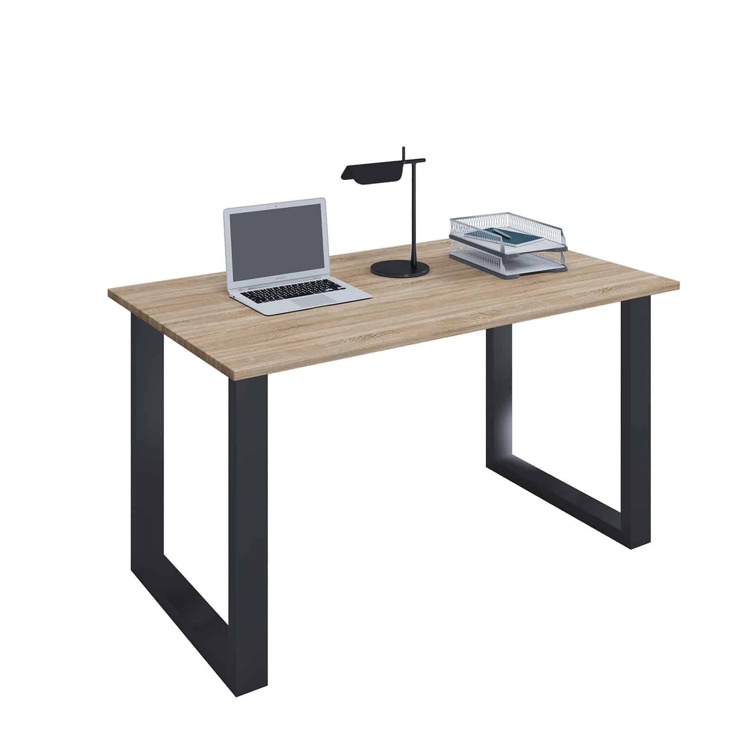 Mangler du et nyt skrivebord til hjemmekontoret? Så er dette Lona U-feet skrivebord måske noget for dig. Bordet er lavet med en bordplade i naturfarvet træ og stilfulde U-ben i sort metal, der matcher bordpladen. Der er tale om et lille skrivebord, de