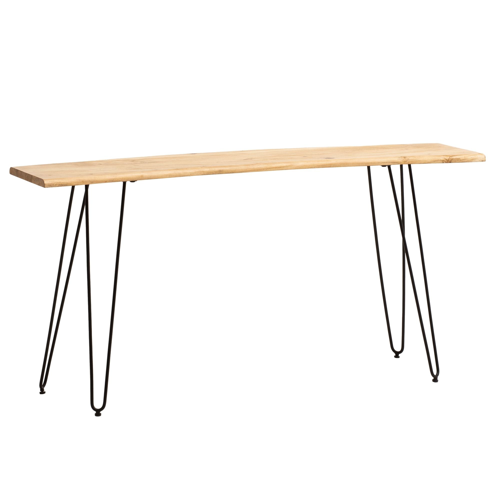 Skrivebord 150x36x75 cm, massivt akacietræ/metal, computerbord med levende kant, hjemmekontorbord, massivt træbord med hårnåleben i sort, smalt træbord, laptopbord, arbejdsværelse