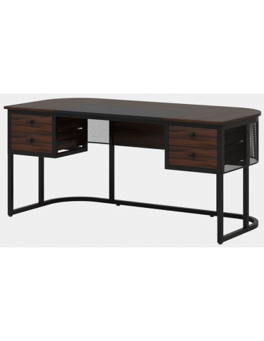 Skrivebord udført i et design af sortlakeret metal og brun MDF. Skrivebordet måler 75 cm i højden og 160 x 80 cm i bredde og dybde. Skrivebordet indeholder 4 skuffer til opbevaring.