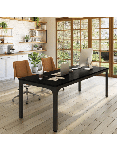 Skrivebord udført i et design af sortlakeret metal og sort møbelplade. Skrivebordet måler 75 cm i højden og 200 x 70 cm i bredde og dybde.