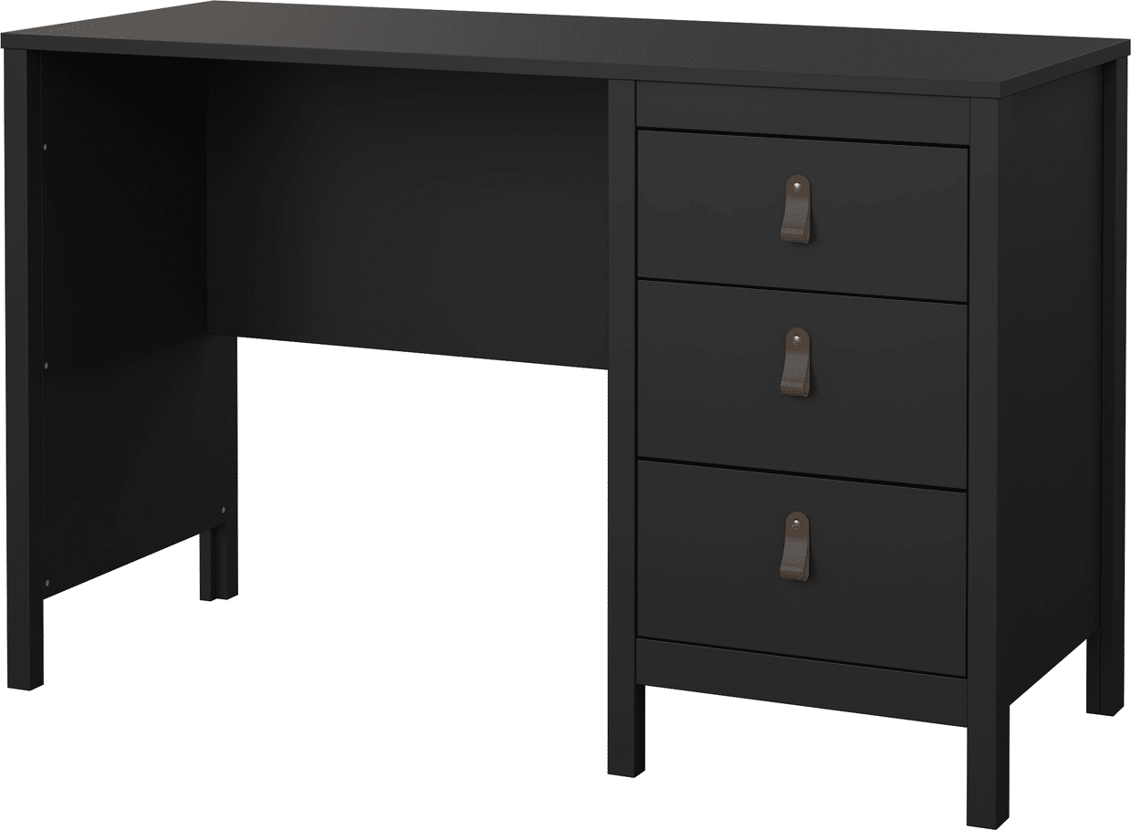 Skrivebord Vesterholm Lunor, 3 skuffer, mat sort, B120 x D48 cm, FSC, produceret i Danmark